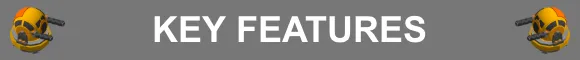 • Remote rail-mounted turret control including commands to move, stop, reverse, patrol, repair, reload, recharge, upgrade and return to Base