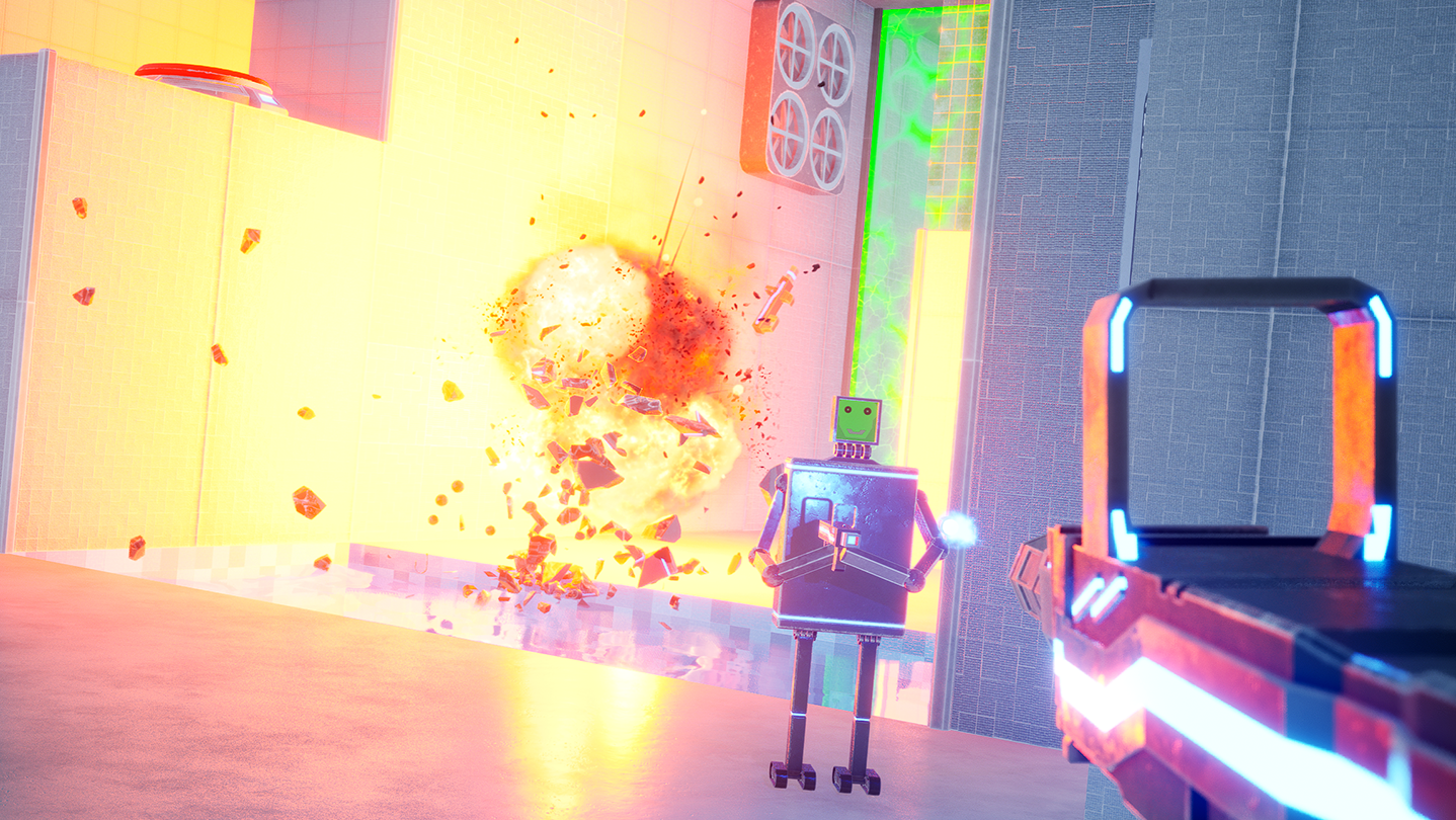 Fight your way trough the test chambers as fast as possible to get back to the computer, while also encountering problems regarding the facility, due to the instability of the facility's software.