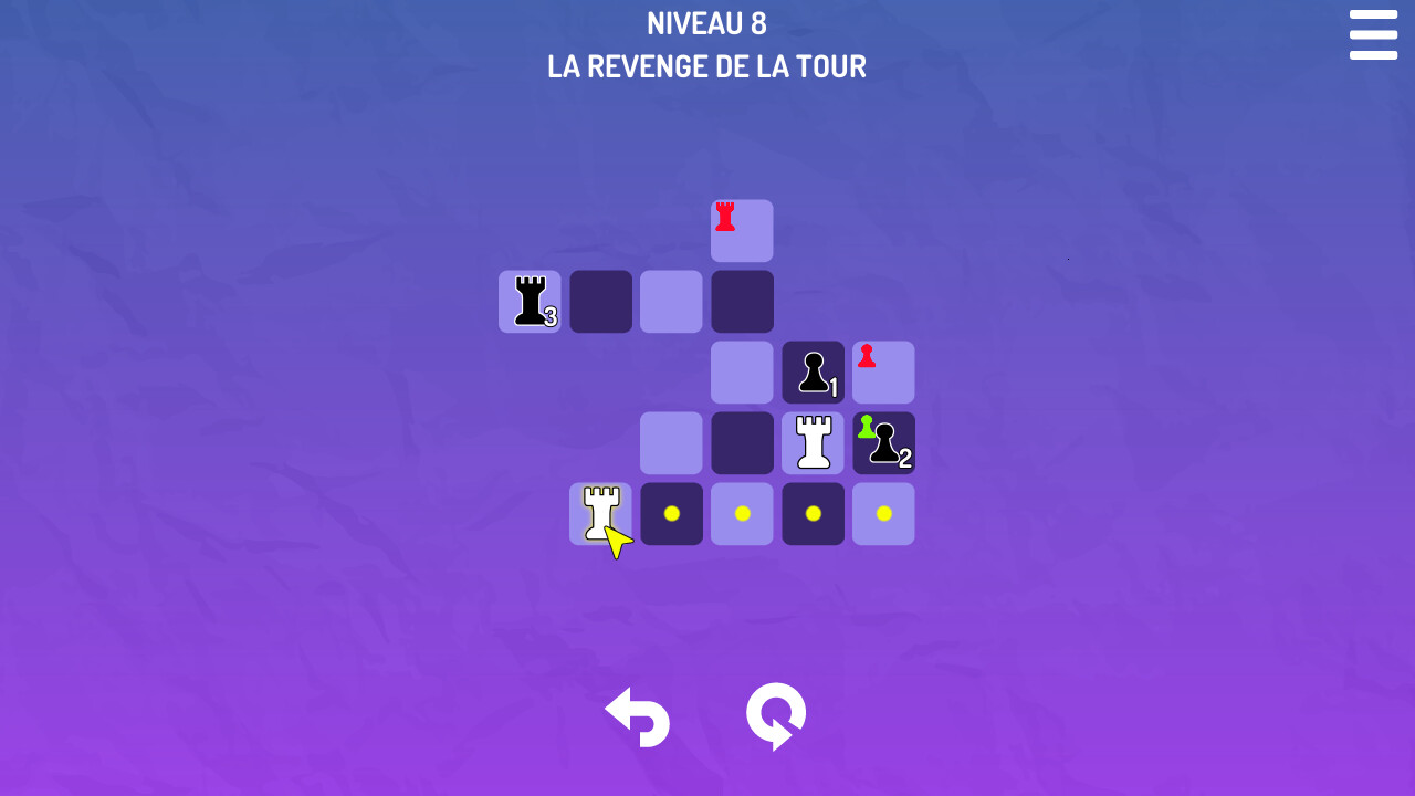 Le but de chaque niveau est de pousser toutes les pièces d’échecs noires à leur destination.