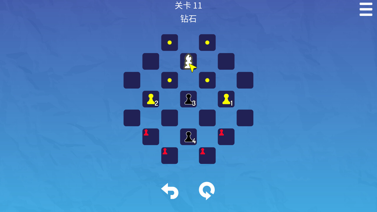 每个关卡的目标是将所有黑色棋子推到其目的地。