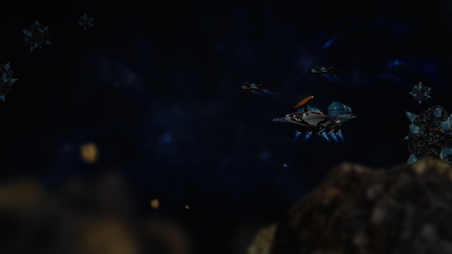• Minado y administración de recursos: Usarás naves mineras para minar agua y metal de asteroides. Estas mineras llevarán sus recursos a la estación espacial o depósito de recursos más cercano. Con estos recursos, puedes construir naves, bases y mejorar tu flota.