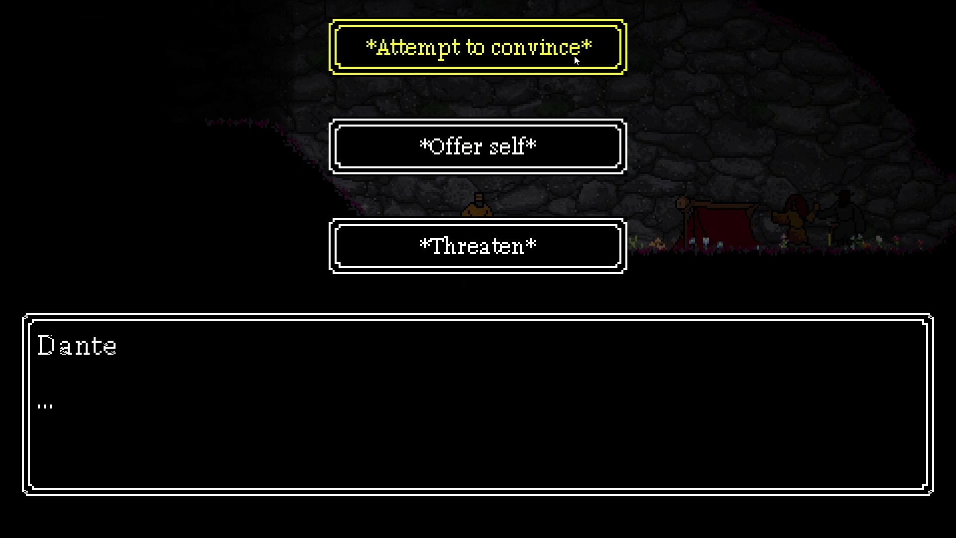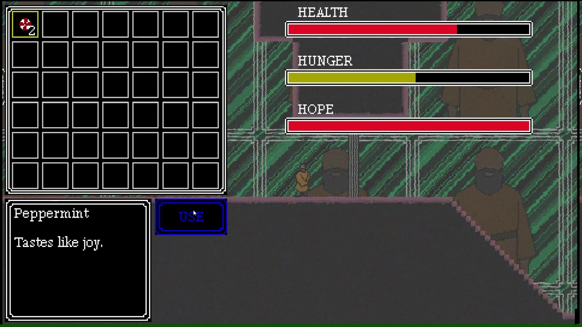 If Dante’s HEALTH or HOPE reaches zero, Dante dies. If Dante dies, all save files are deleted. This creates a unique, never before seen narrative tension in Yuma Will Burn. Unlike other video game protagonists, Dante is not all-powerful. Any heroics Dante may perform can cost him dearly. When death lies behind every corner, even the smallest story or gameplay decisions can have unknown importance. Yuma Will Burn is not a power fantasy. Instead, it’s an experimental drama that puts you in a position of moral decision-making from a disempowered perspective.