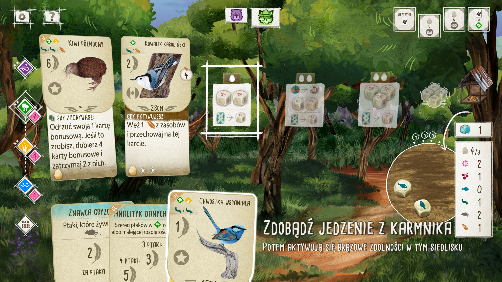 Plansza gracza prezentuje teraz nowy design i funkcjonalności. Znajdziesz na niej nie tylko miejsce na swój nektar, ale także opcje resetowania karmnika dla ptaków i tacki z kartami. Plansza umożliwia także szybsze niż dotychczas zdobywanie pożywienia i kart, podczas gdy możliwość składania jaj jest zredukowane. Wszystkie te zmiany urozmaicają dynamikę rozgrywki.
