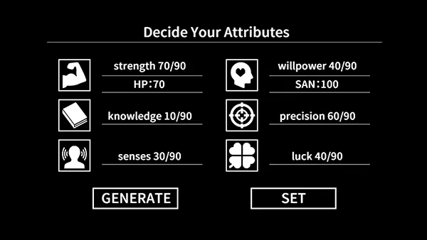 Your stats are randomized and customized at the start of a game, making each playthrough unique!
