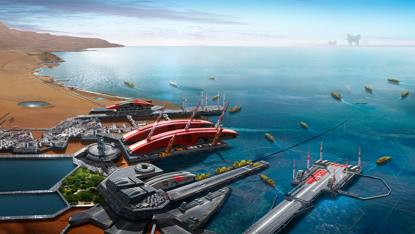 Cut down on shipping times with ocean-based routes to have your supplies delivered as fast as the tides! Newly introduced port systems will allow you to optimize your barge fleet to aid and optimize your resource production and technological breakthroughs.