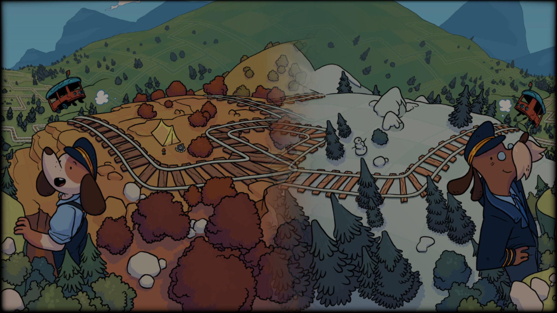 Railbound is a comfy track-bending puzzle game about a pair of dogs on a train journey around the world.