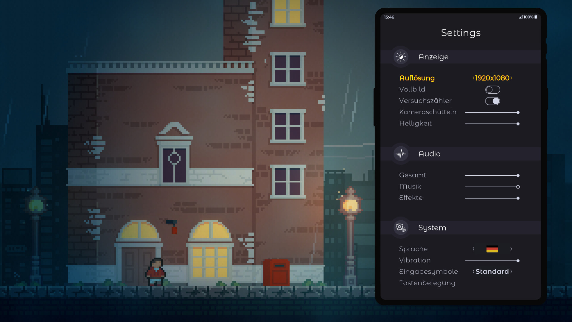 • Optionen zum Einstellen von Kameraruckeln, Rumble und Helligkeit