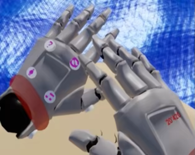 • On the left (VR) hand there are several buttons to interact with the gameplay. We can do so by using the right forefinger