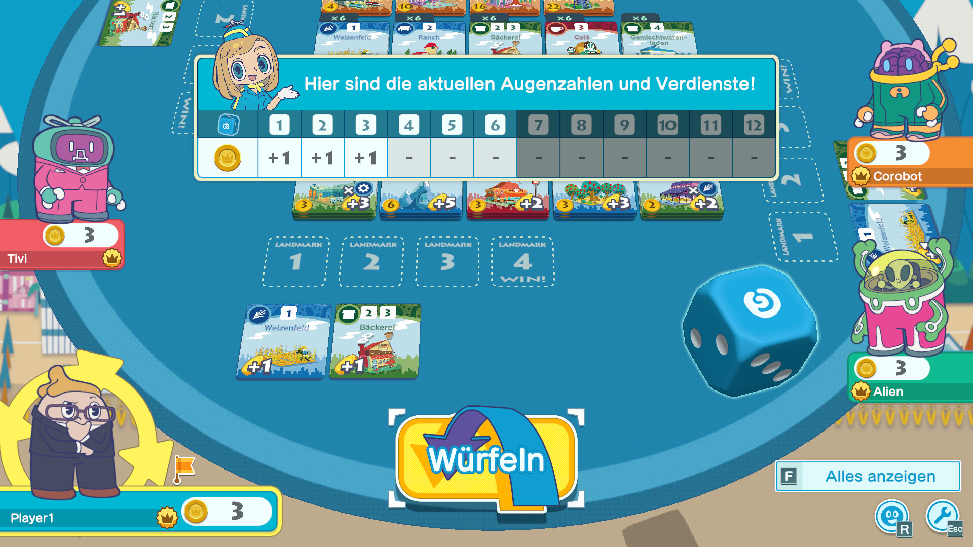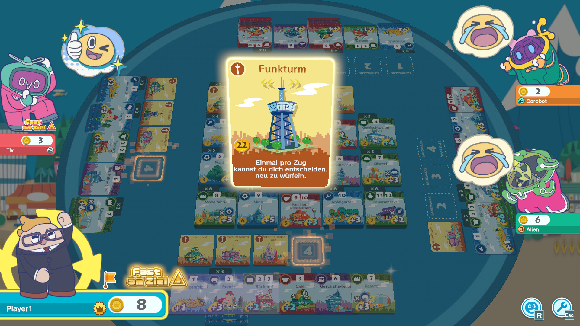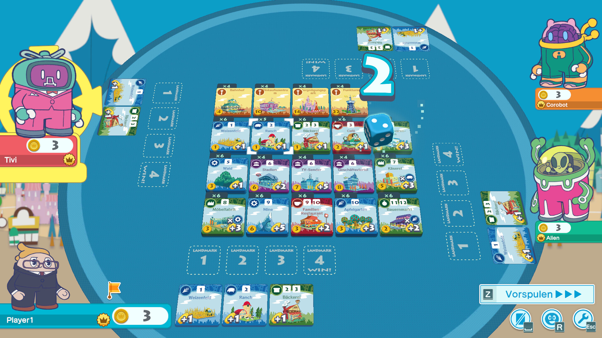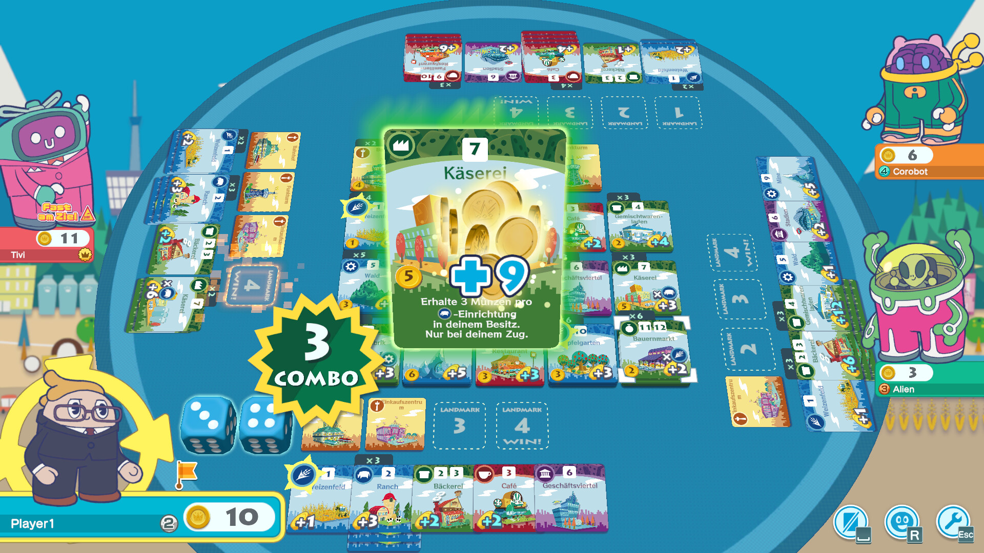 Hier nun MACHI KORO mit allen, die digitale Version des Brettspiel-Klassikers.