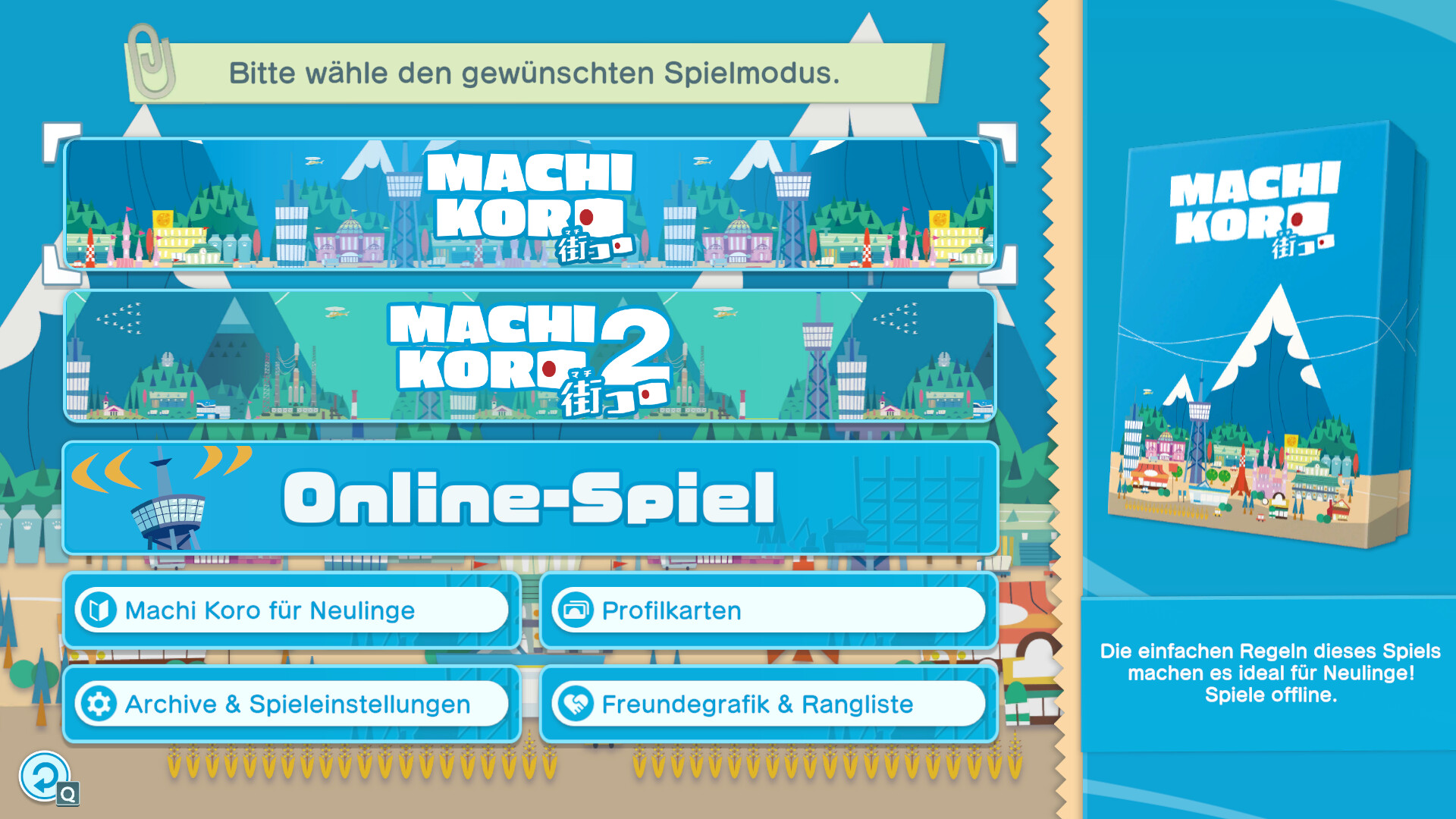 MACHI KORO mit allen ist die digitale Version des in Deutschland zum Spiel des Jahres 2015 nominierten analogen Brettspiels MACHI KORO. Ob online oder offline – Durch die einfache Bedienung kannst du direkt mit allen spielen und riesigen Spaß haben!