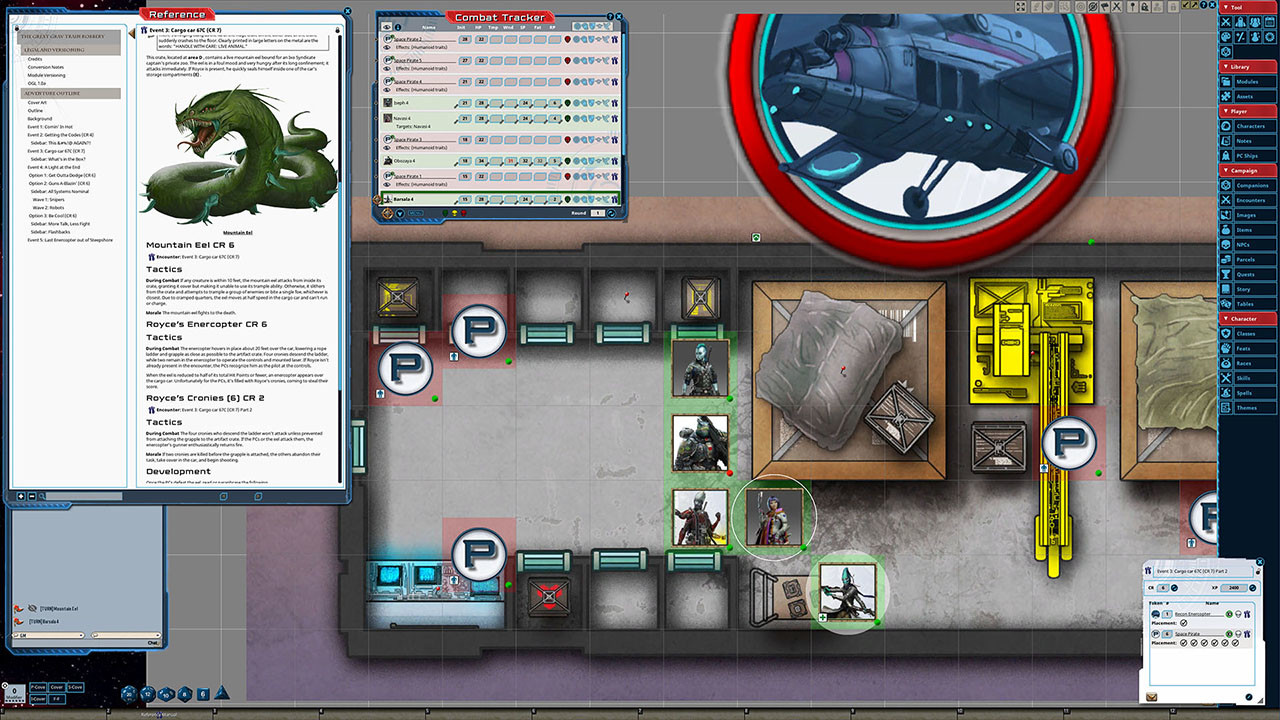 • Tokens for each encounter are all pre-placed in starting locations on the map. You can edit these on the fly.