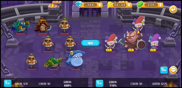 4、在【竞技场】里,有两个队伍PK,玩家们可以投资,非常热闹。被投资的一方,会进化,变得更强,胜率更高。