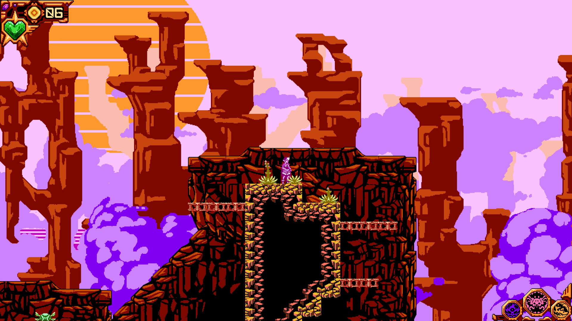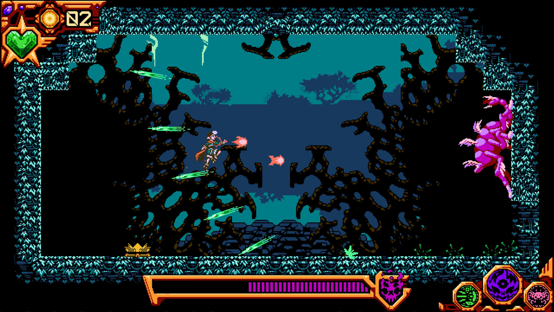 Visually reminiscent of classic titles like Mega Man and Super Mario Bros., Star Hearts: Launch Point is an entirely handcrafted experience, featuring the vibrant color palette of the Nintendo Entertainment System, completely hand drawn animation and level design, and zero rotation, scaling, or bone rigging.