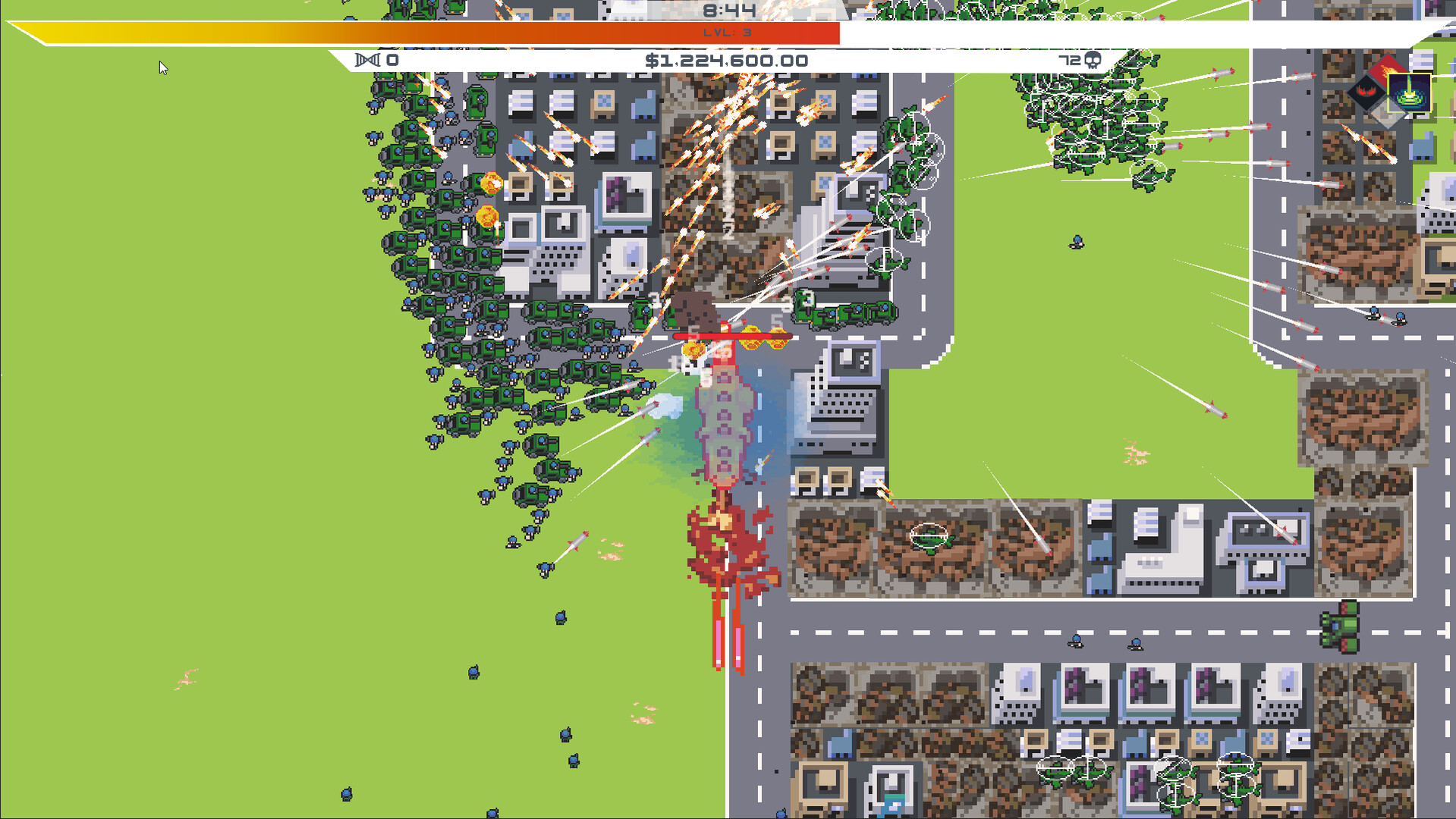 Mad science isn't cheap, turn the untold destruction you wreak into funds for your mad science research projects. Unlocking new skins for your kaiju, new locations to destroy, and interesting accessories.