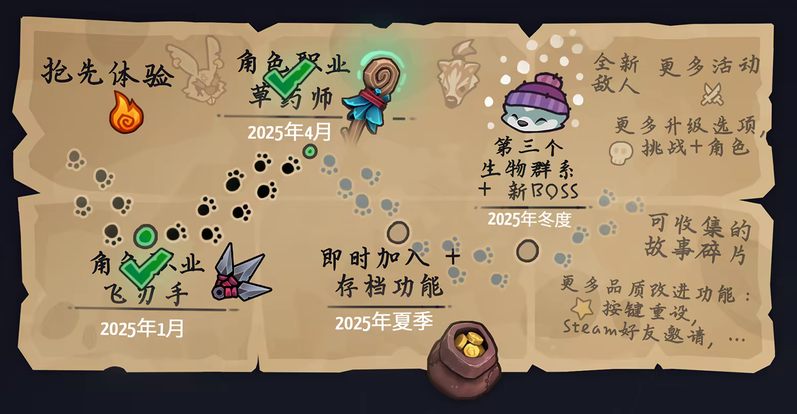 巧妙的合作是关键,因为路上到处都是障碍。白天时,玩家得收集各类资源,并改进这辆值得信赖的马车;到了夜晚,四周就会充满危机。太阳落山后,土匪兔子和獾就会集结起来发动攻击了!猫朋友们不仅得保卫马车,还不能让信标上的火熄灭了。
