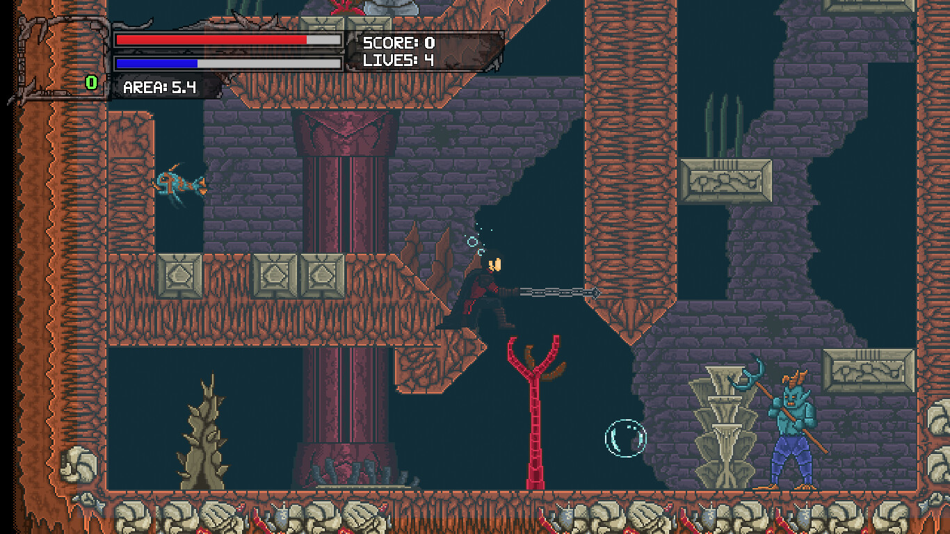 • Your main weapon is a whip with a multi-directional ability: attack horizontally, vertically and diagonally!