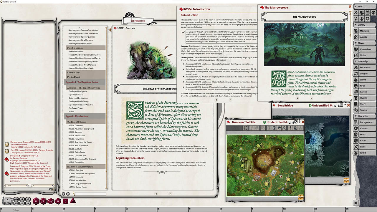 Requires: The free Fantasy Grounds virtual tabletop (VTT) software and the included 5E Compatible ruleset.