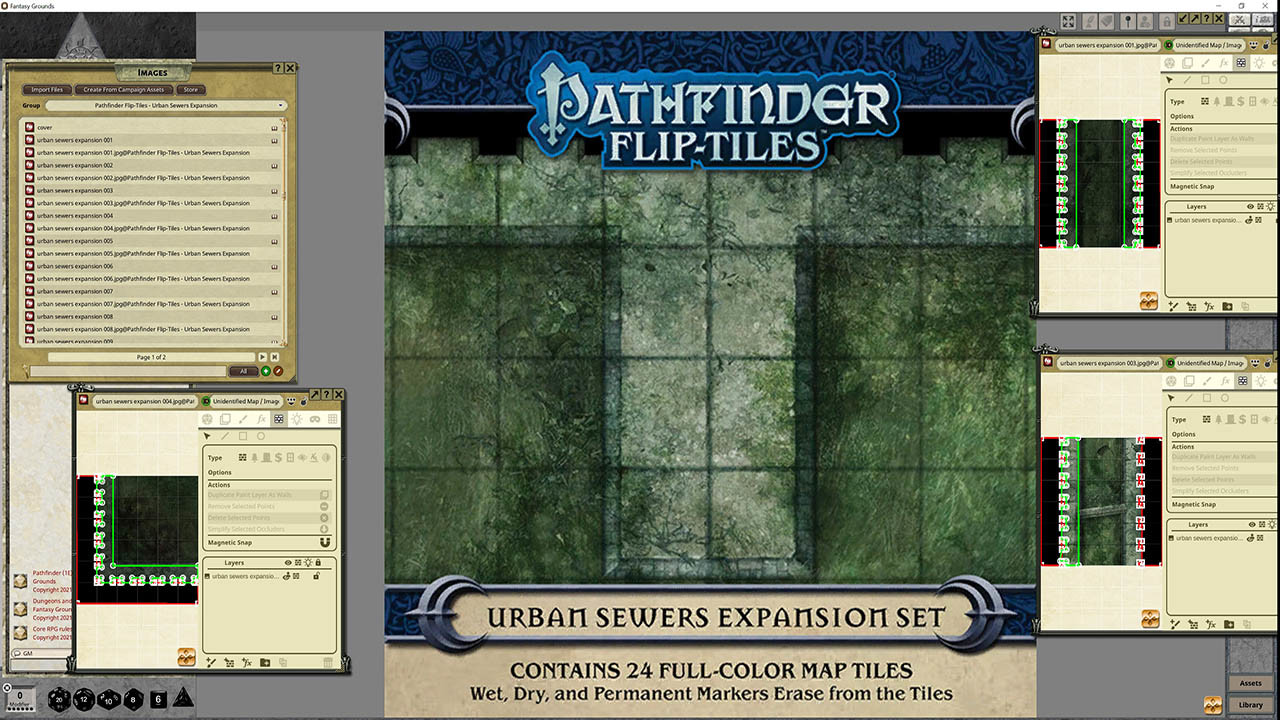 Pathfinder Flip-Tiles: Urban Starter Set , allows you to quickly create sprawling sewer complexes! So stop your sketching and start your flipping today! The Urban Sewers Expansion Set includes: