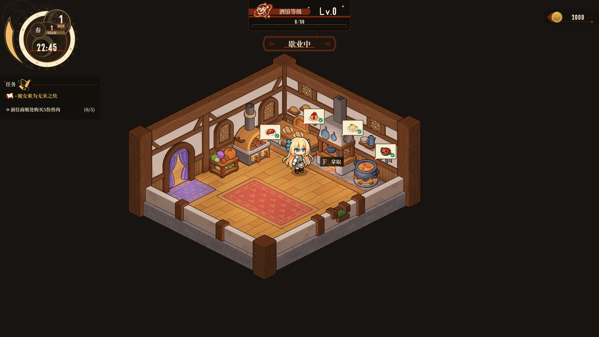 凭借可以让魔女们摆脱噩梦的宁神花蜜饮料,你的旅店很快生意兴隆,于是你开始招募员工、装修旅店、采购食材、研发菜品、结交朋友……并探索这个充满乐趣的世界!