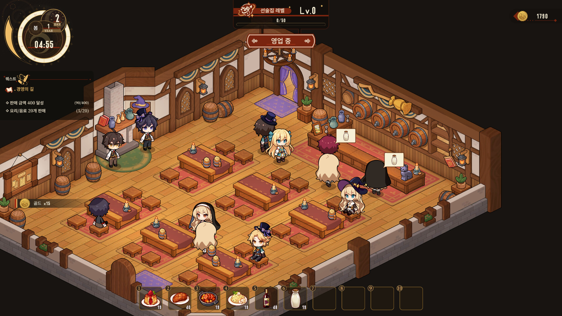 마녀들이 악몽에서 벗어날 수 있는 닝신 화밀주로 당신의 술집은 곧 사업이 번창하기 시작했습니다. 그래서 당신은 직원을 모집하고, 술집을 인테리어하고, 식재료를 구매하고, 요리를 개발하고, 친구를 사귀고...그리고 이 즐거움이 넘치는 세계를 탐험하기 시작했습니다!