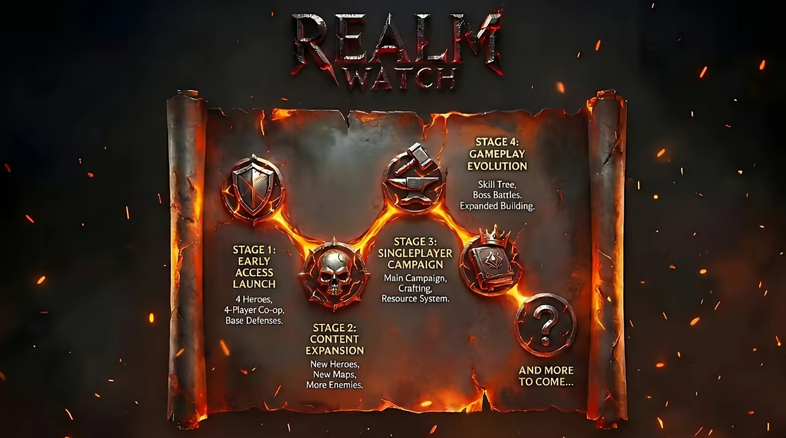“Currently, RealmWatch features a solid foundation for thrilling dark-fantasy defense. Players can choose from 4 unique heroes and jump into the fray either solo or with up to 3 friends (4-player co-op) on a highly detailed map. The core mechanics - including defensive placement, wave-based combat, and fundamental character progression—are fully implemented and playable.”