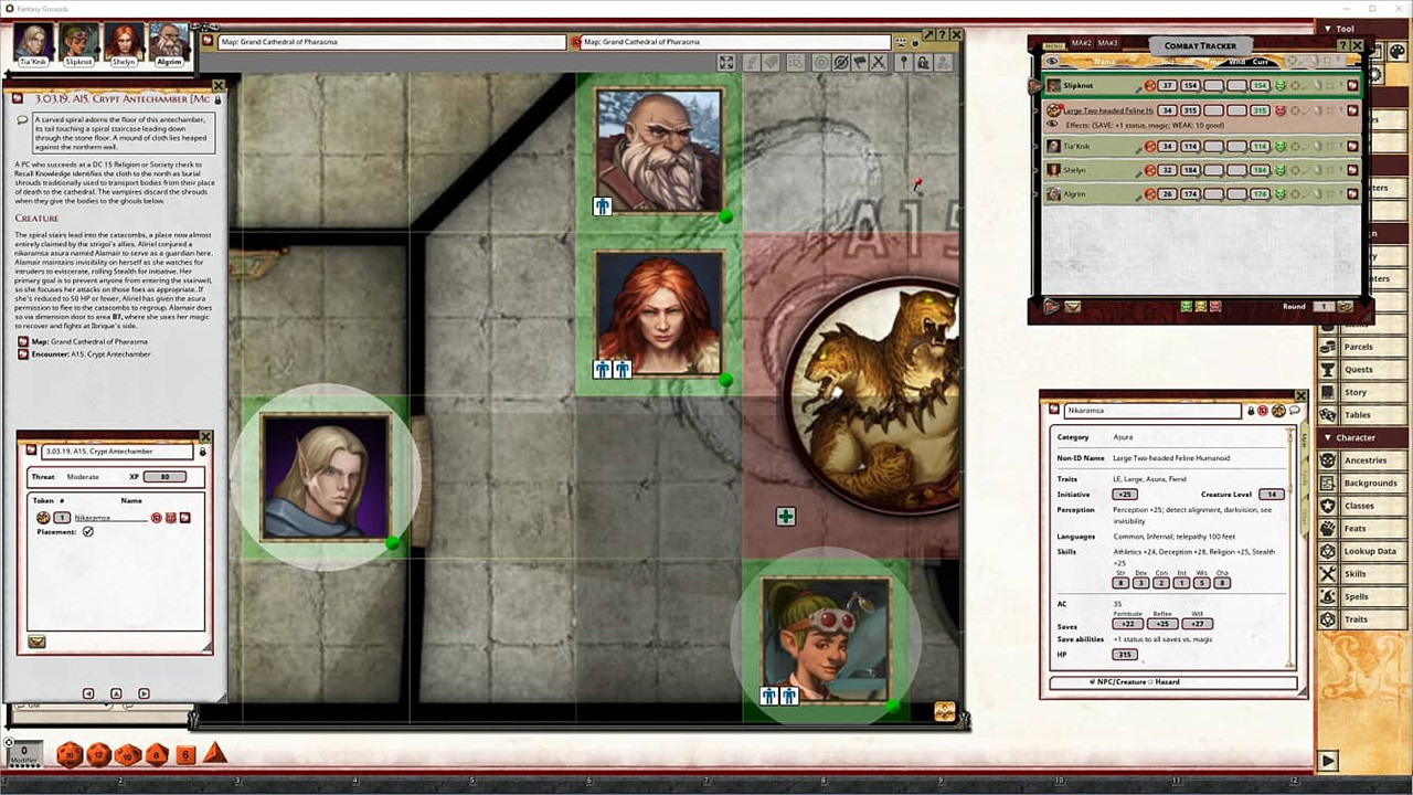 Requires: The free Fantasy Grounds virtual tabletop (VTT) software and the included Pathfinder 2.0 ruleset.