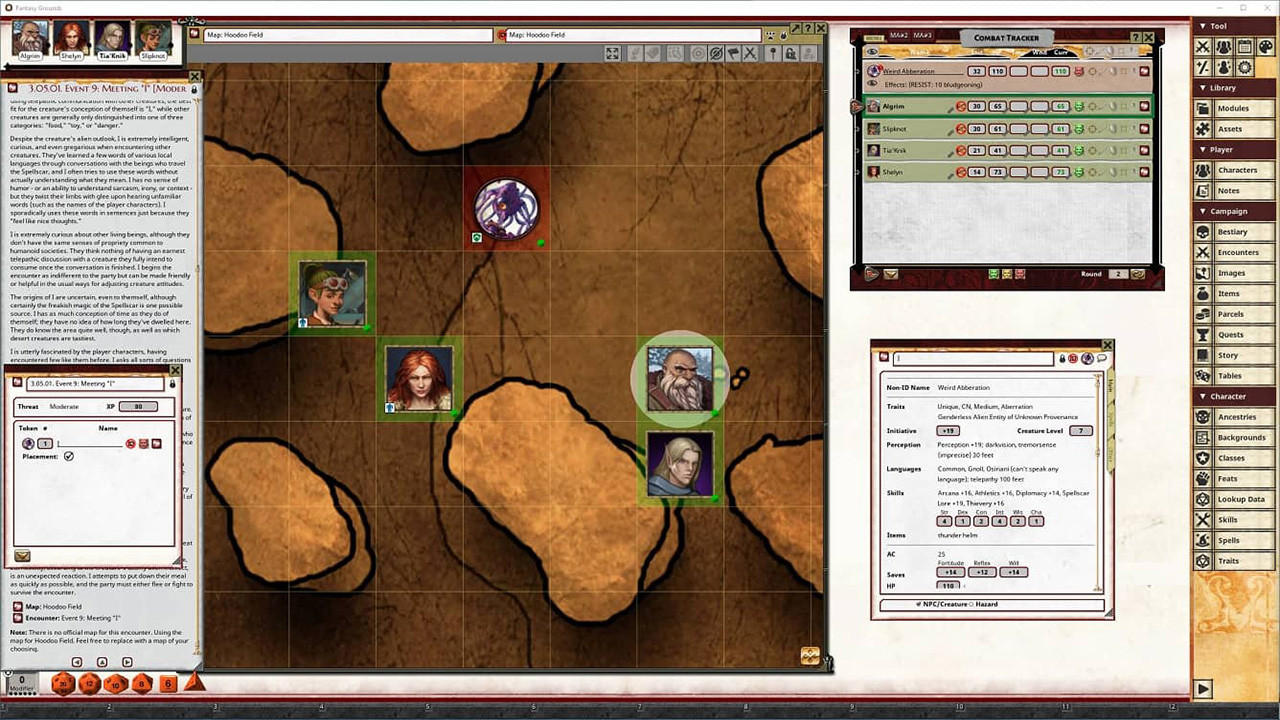 • Tokens for each encounter are all pre-placed in starting locations on the map. You can edit these on the fly.