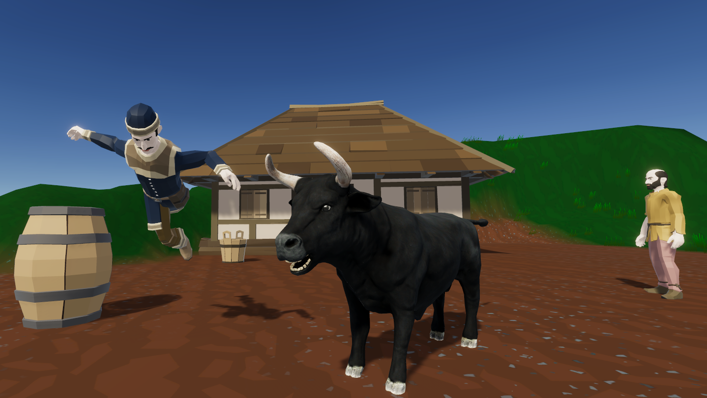 Have you ever wondered what it's like to be a four-legged pile of muscles with two sharp horns? Now you have a chance to run around and destroy anything that stands on your way. With the mouse, you have a full control over the bull's head movement. The game uses advanced active ragdoll physics - enemies are not just puppets, the animation only drives the physics engine, so you can interact with their movement.