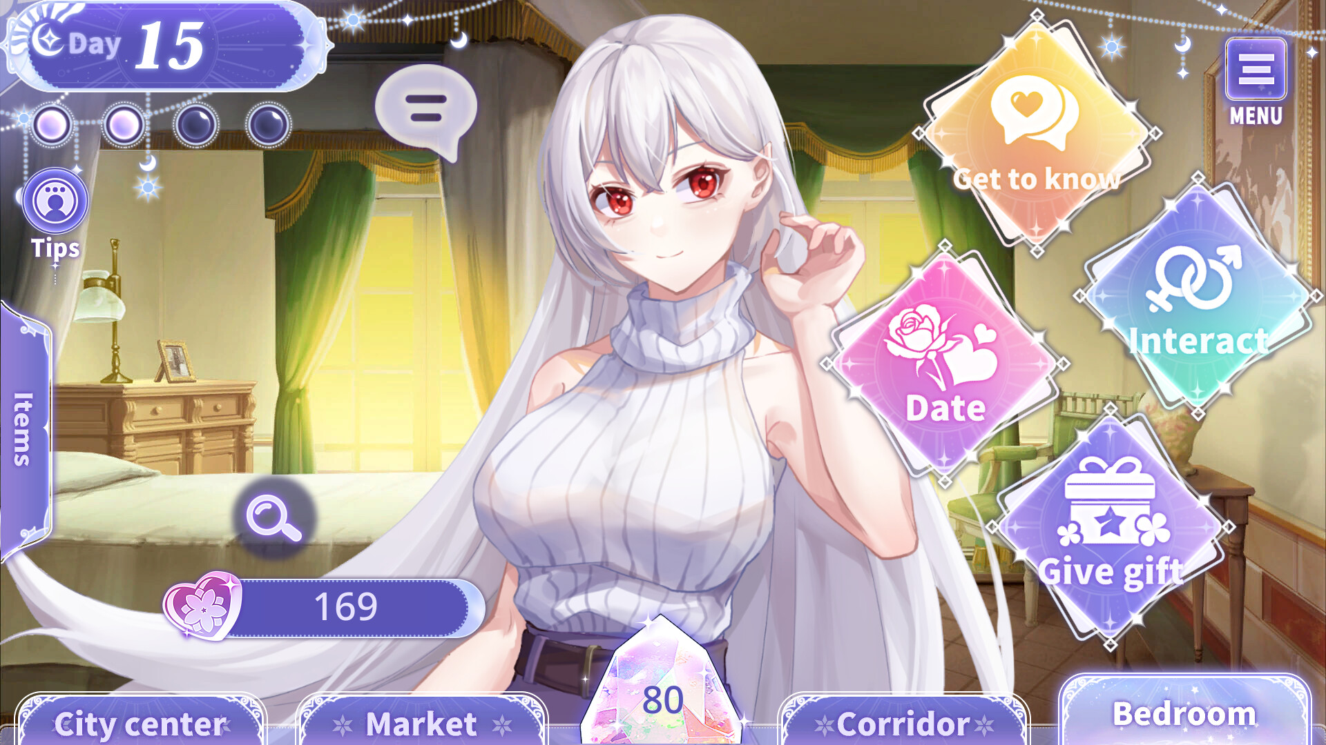 Players can get to know Flan better by "talking," "interacting," "giving gifts," and "dating," in which other characters will appear. You will be able to interact with other characters in specific ways. There are also objects in the scenes that can be investigated, and the results of the investigation may make your interactions with Flan easier.