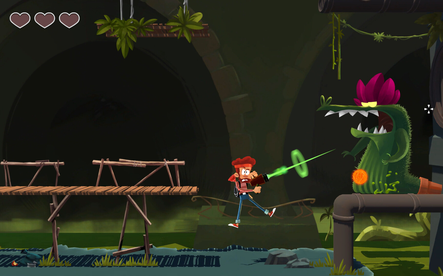 Boo! is a 2.5D side-scrolling shoot 'em up platformer set in a vibrant cartoon world… that’s slowly being devoured by a green apocalypse.