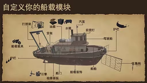 ●多种船载模组可自定义组合,可搭配出各种功能的船只