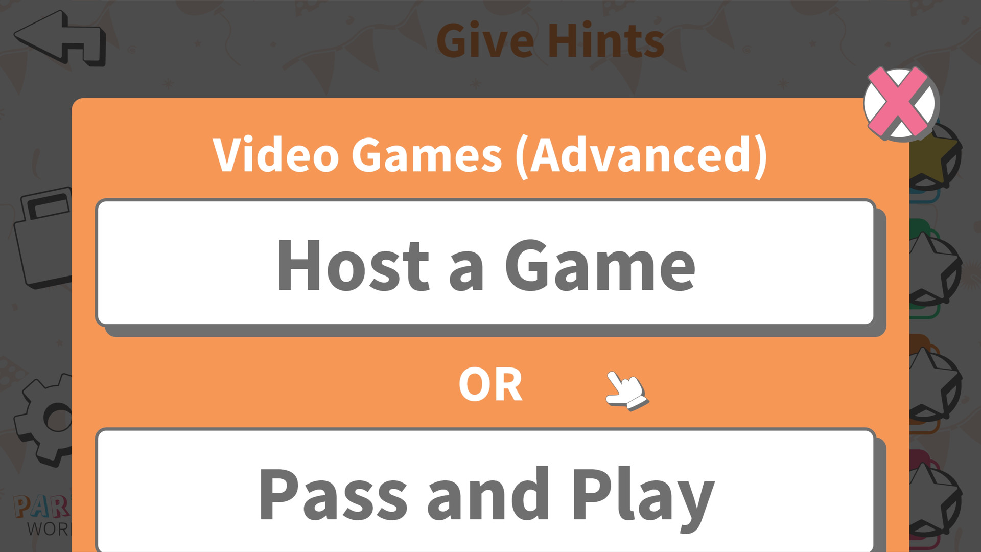 Party Words is a.... party word game. It combines a ton of decks covering people, places, categories, objects, and music, with a bunch of game modes like giving hints, answering prompts, and thinking on your feet for new ways to play!