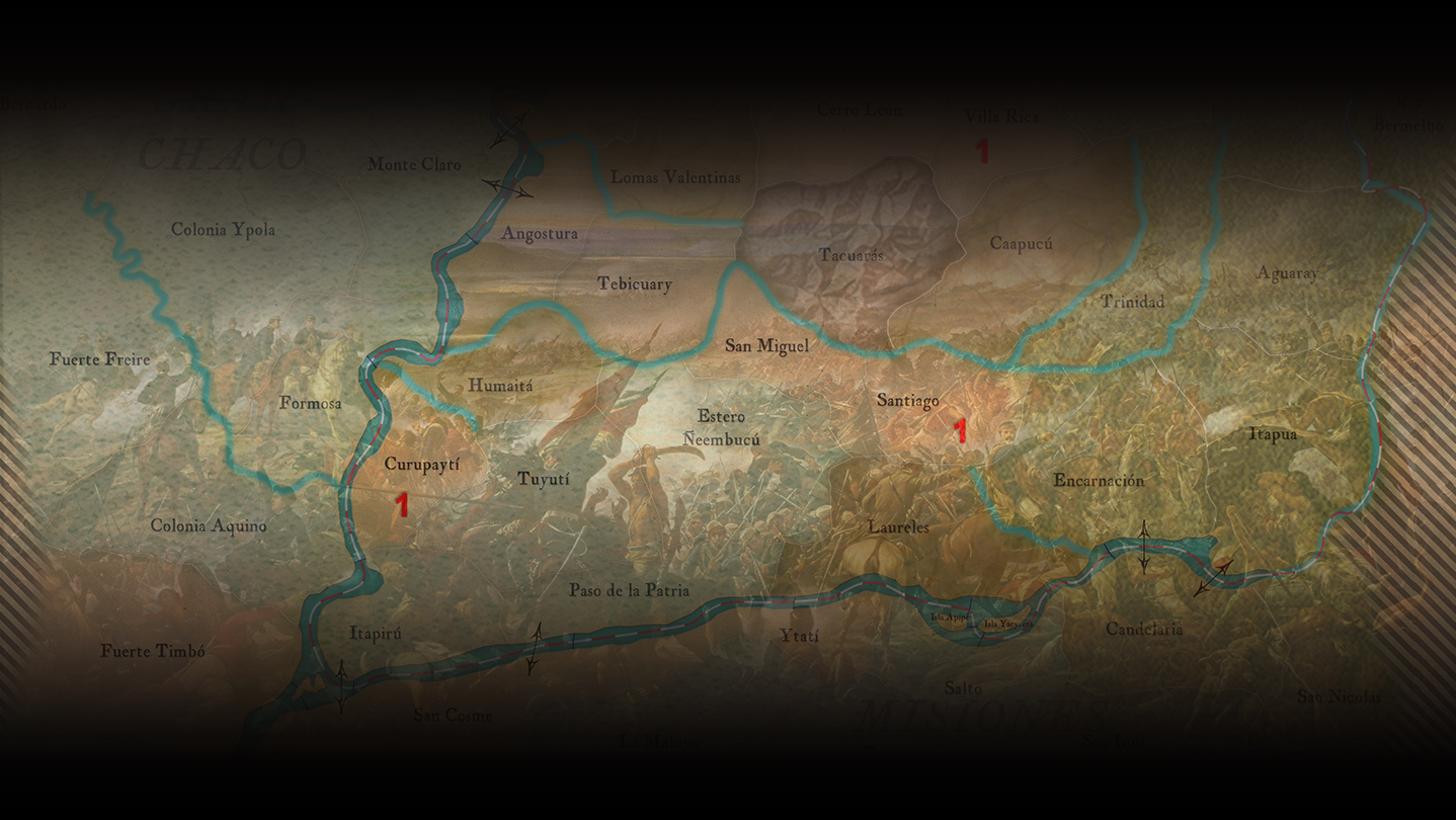 • Uruguay is split between two factions, the white (Blancos, supporting Paraguay) and the Colored (Colorados, supporting the Allies).