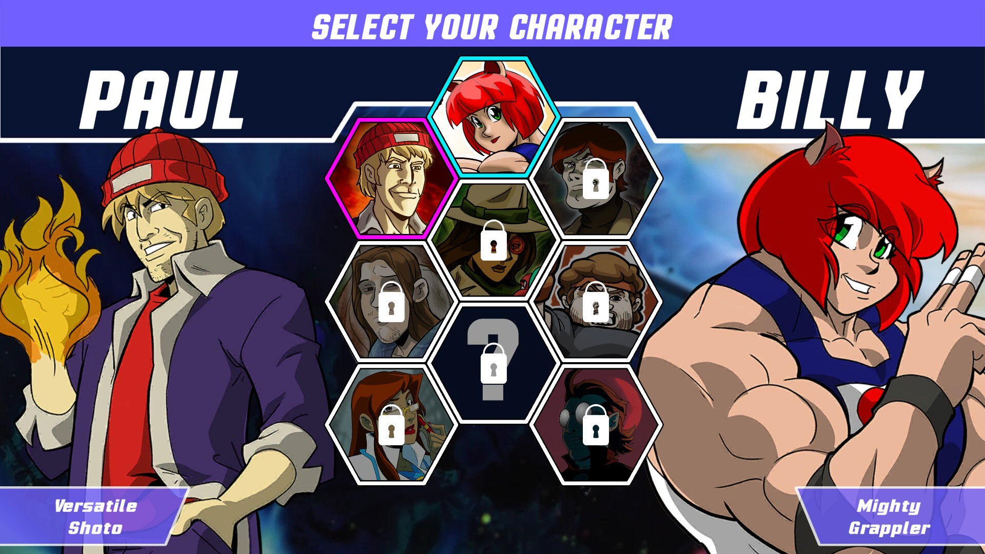 Try Mega Knockdown, the turn-based 2D fighting game! Demo includes a full tutorial, two playable characters, and a sampling of game modes.