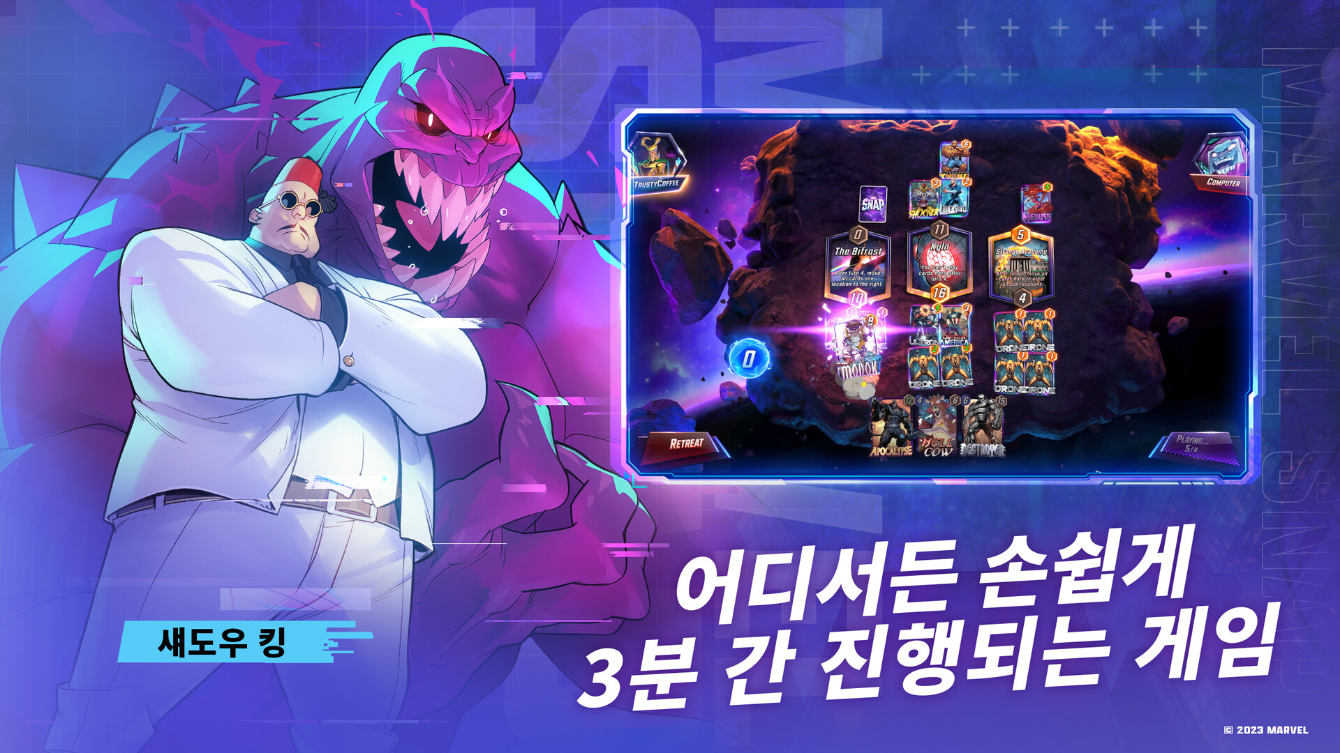 마블스냅은 빠른 속도로 진행되는 수집형 카드 게임으로, 혁신적인 메커니즘으로 장르를 재정의하였습니다. '최고의 전략 게임' 및 '올해의 획기적인 게임' 등 수많은 수상 경력에 빛나는 마블스냅으로 여러분을 초대합니다. 전 세계 수백만 플레이어와 함께 즐기세요. 배우는 데에는 몇 분이면 충분합니다. 오늘 바로 시작하세요!
