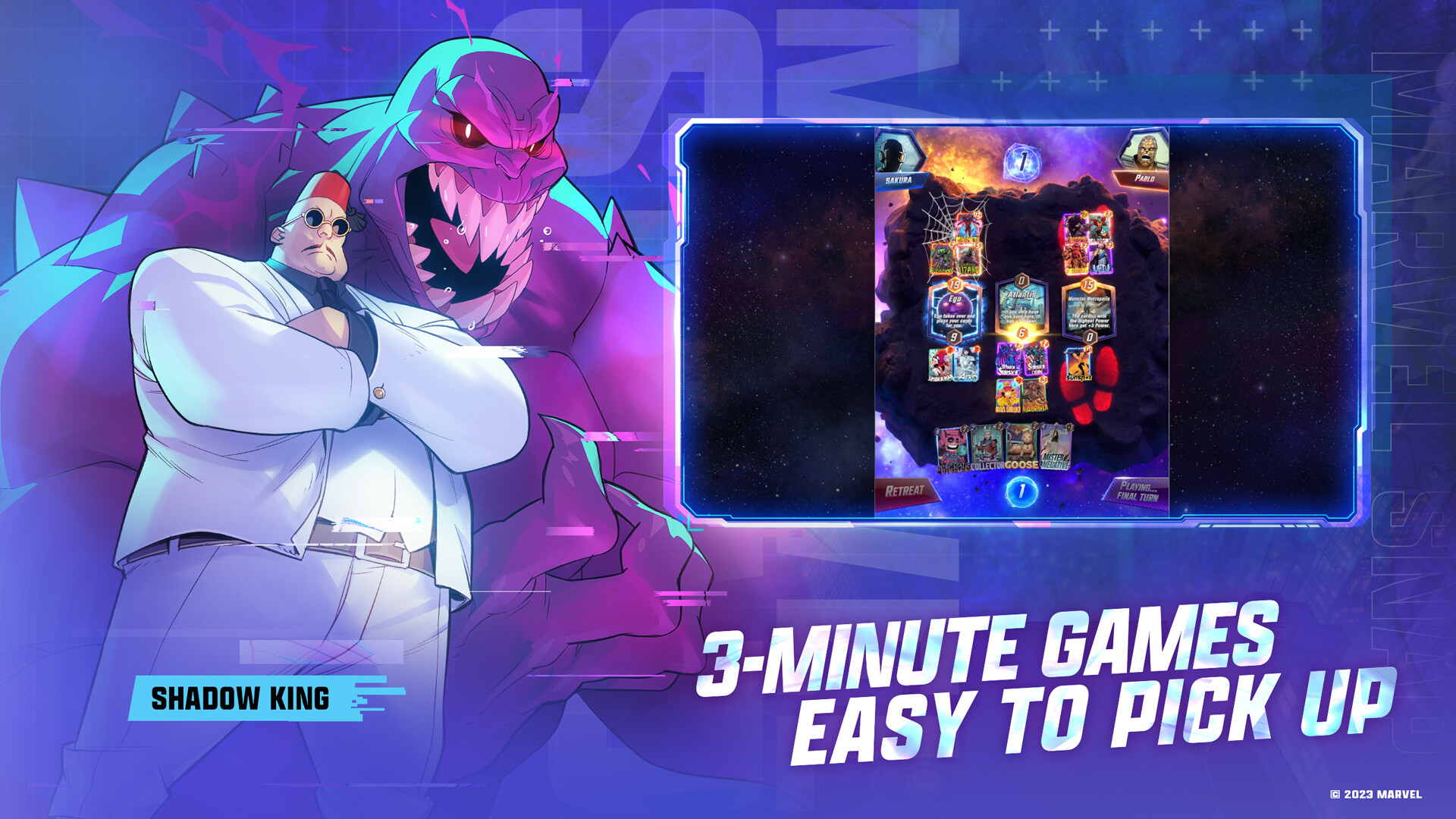 The game only takes a few minutes to learn and 3 minutes to play. Jump right in and find out why MARVEL SNAP won multiple industry awards!