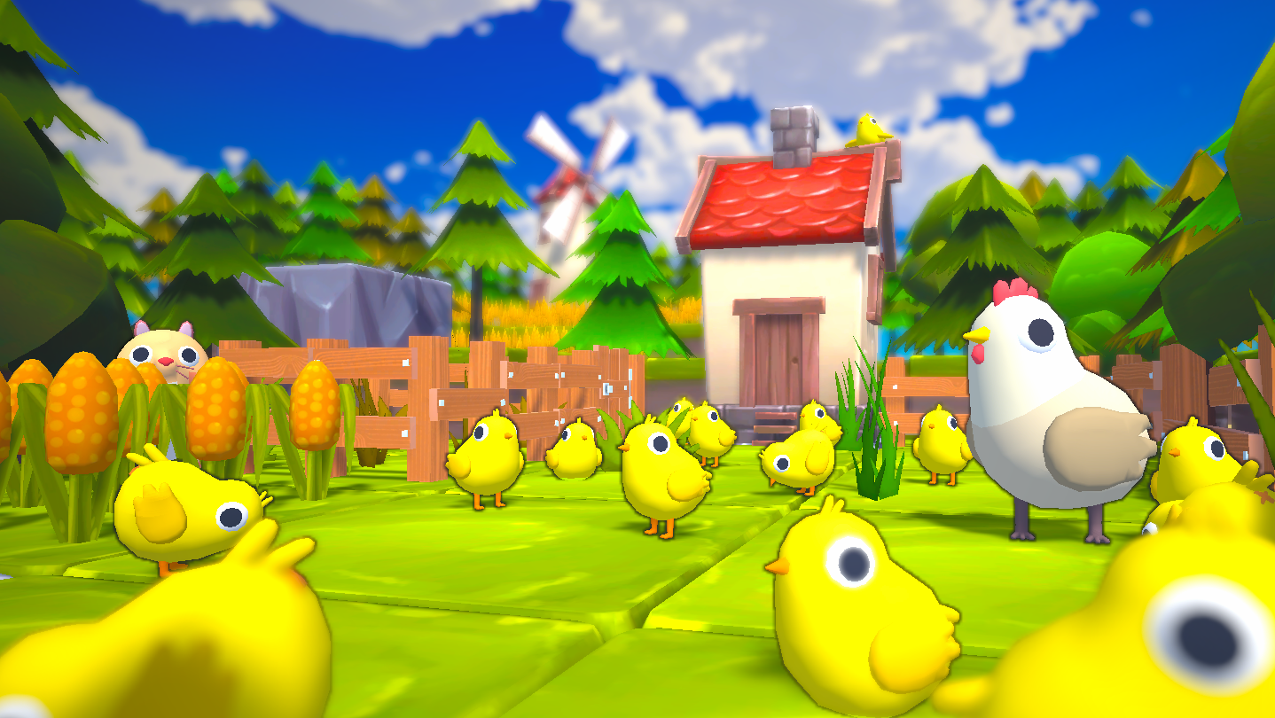 Your objective is to save all the lost chicks, preventing the cats from reaching them before you do. Cats mimic your movement, so find a way to get them to stay away from ‘Ju’ and her chicks.
