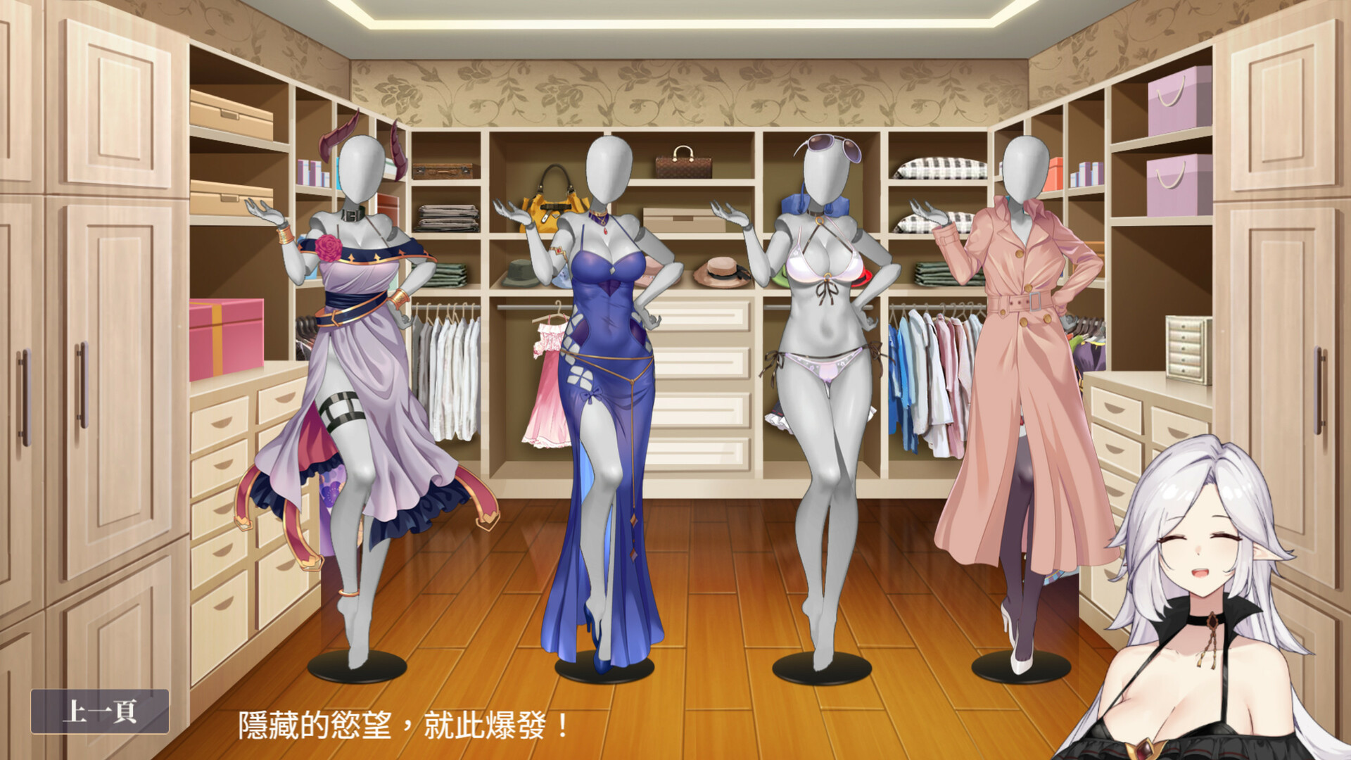 ◇女主有七套衣服可以更換:日常服、女僕、旗袍、比基尼、墮落天使、禮服、痴女,數套衣服有自定義選項,或乾脆裸體。