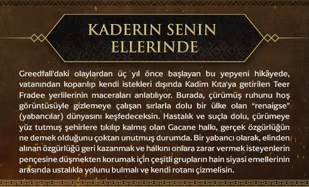 "GreedFall 2'yi geliştirmemize ve olabildiğince iyi bir oyun hâline getirmemize büyük ölçüde yardımcı olacağından, geri bildirimleriniz bizim için son derece önemli olacaktır.