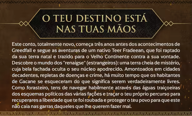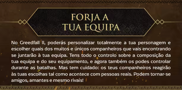 "O teu feedback será muito importante, já que nos irá ajudar imenso no desenvolvimento de GreedFall 2, e a fazer dele um jogo tão bom como pode ser.