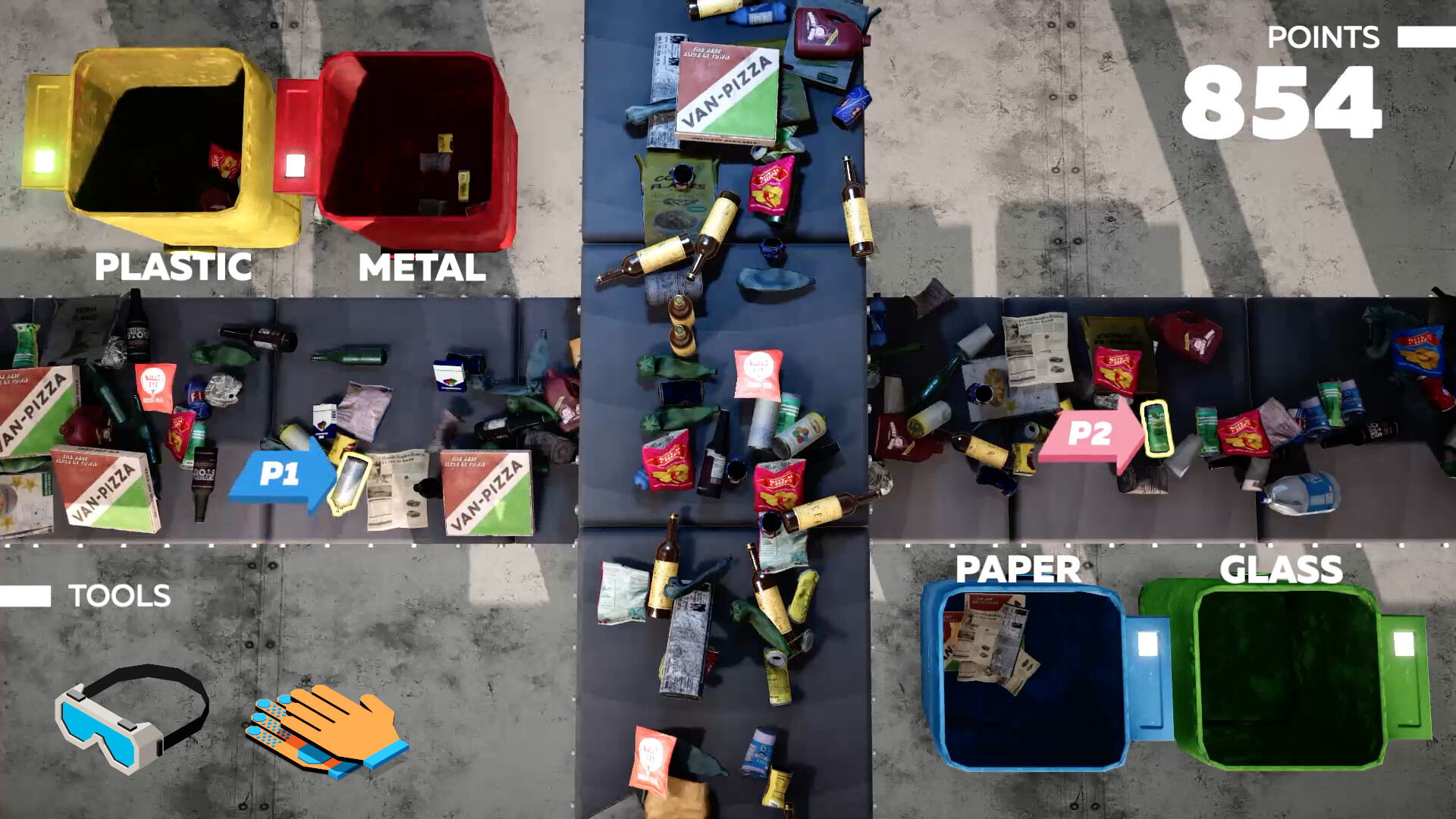 Enjoy the cooperative experience with local multiplayer! Break the record by throwing litter into proper bins and hitting combo! Feel the rhythm while the sorting belt keeps speeding up more and more! Optimize your flow! Find a way to be the most efficient and earn points for each correct match. Become the best of all sorters while having fun with friends.