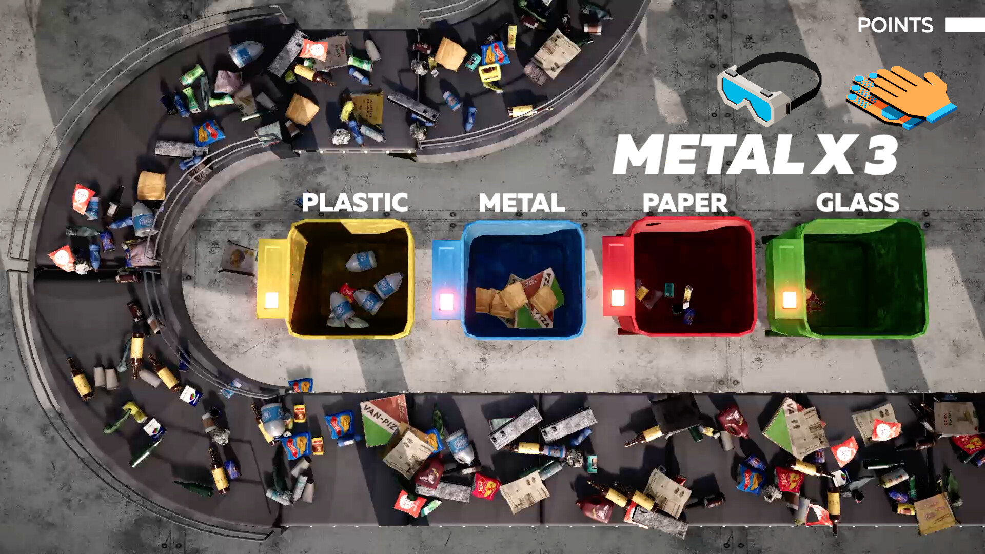 Enjoy the cooperative experience with local multiplayer! Break the record by throwing litter into proper bins and hitting combo! Feel the rhythm while the sorting belt keeps speeding up more and more! Optimize your flow! Find a way to be the most efficient and earn points for each correct match. Become the best of all sorters while having fun with friends.