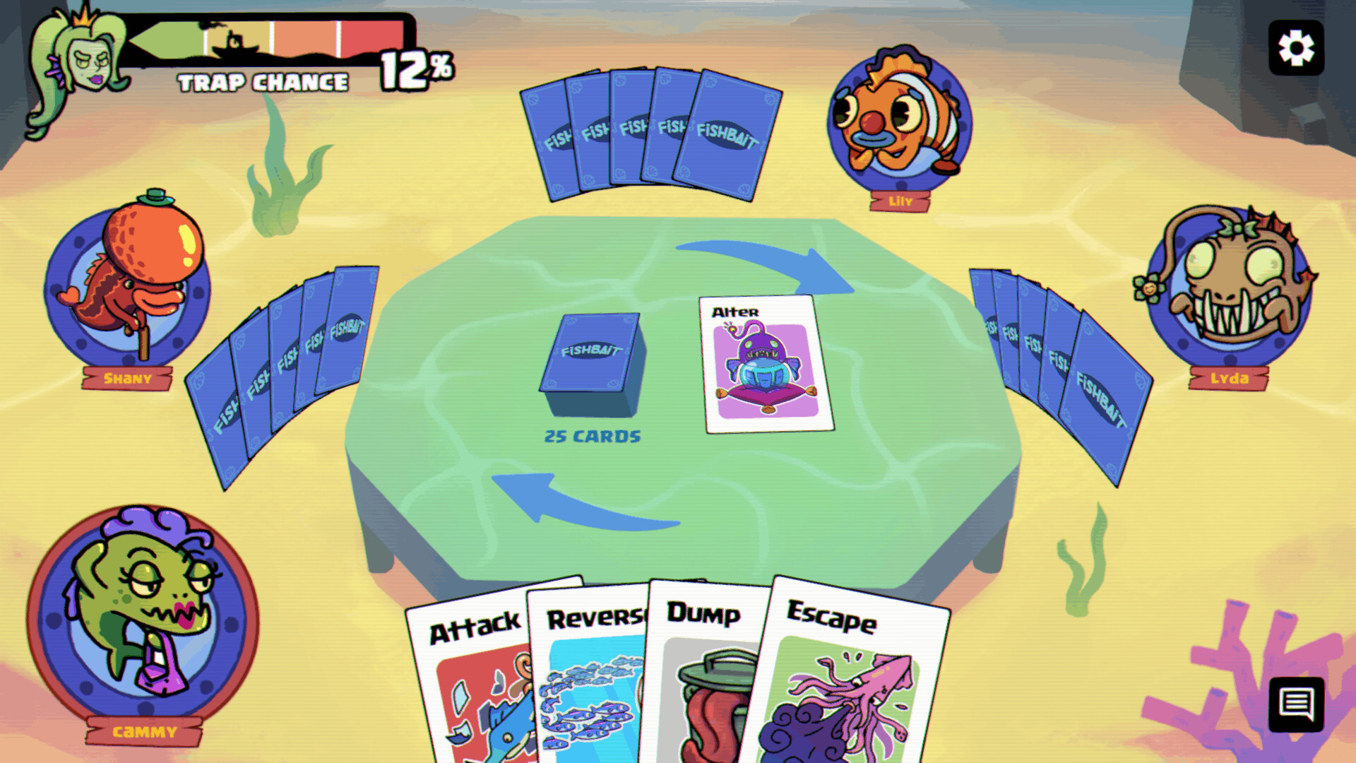Fishbait is a casual 2-4 player card game about survival where the last fish standing wins.