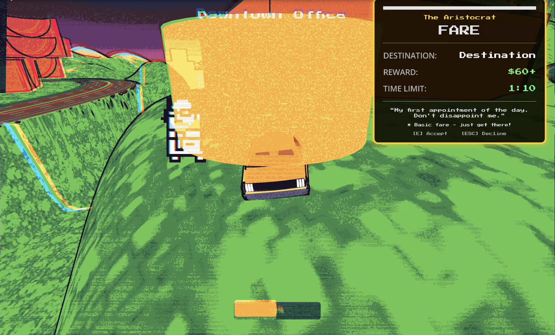 Caddywack blends arcade driving, taxi missions, and trick-based combo scoring inside a dense open world designed for flow. Players accept passenger jobs, choose their own routes, drift through tight streets, launch off ramps, perform aerial and wall-based tricks, and maintain momentum to extend combo multipliers while racing against the clock. The core appeal centers on responsive controls, boost-driven speed, route optimization, and replayable high-score mastery, combining the freedom of open-world driving with the expressive trick chaining of skate-inspired arcade games.