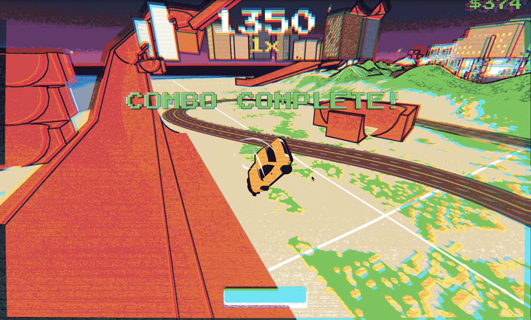 Caddywack is an arcade driving game that blends taxi missions with trick combos, drifting, boosting, and aerial stunts inside a stylized open-world city built for score chasing.