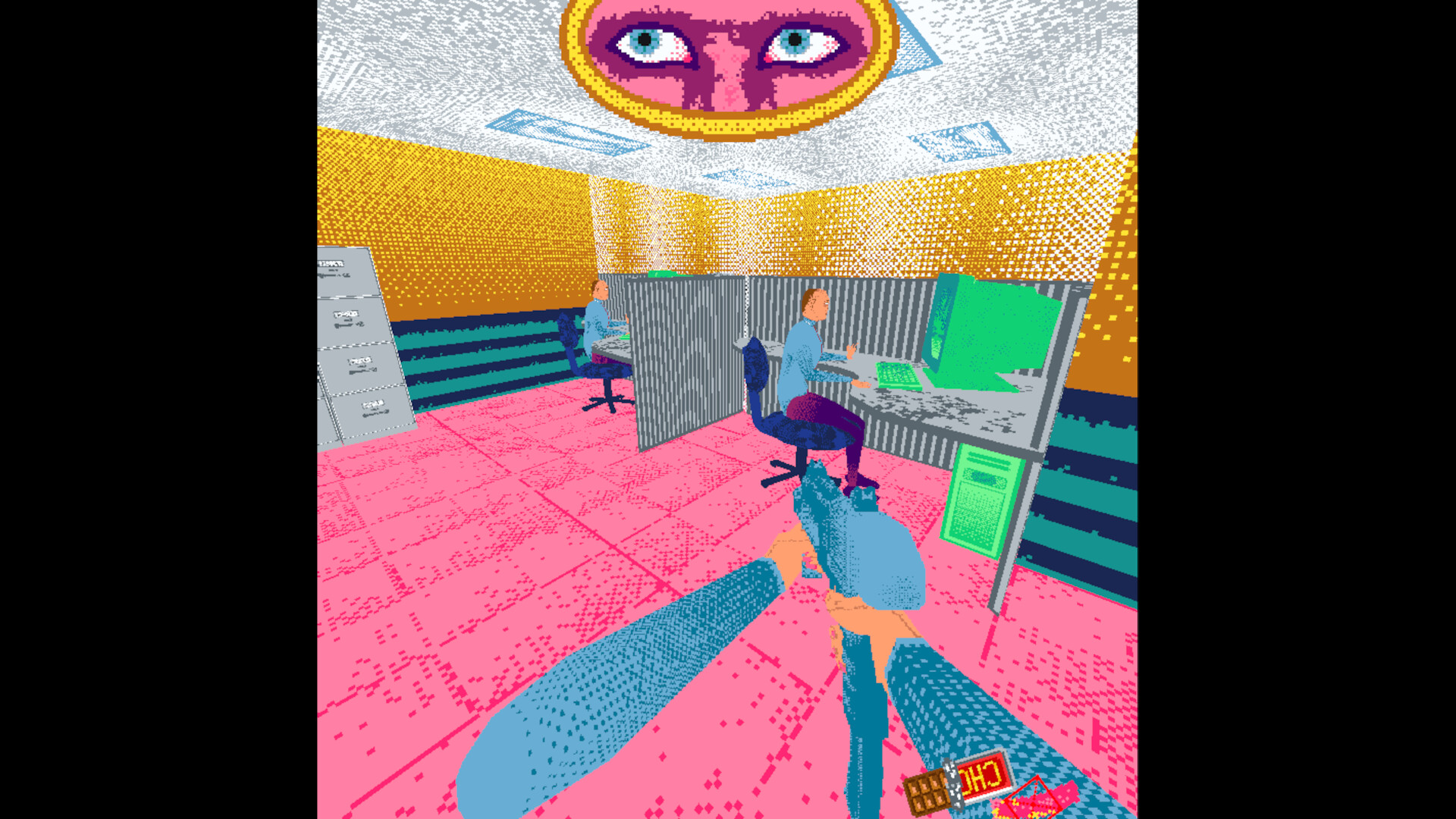 A retro-inspired, jumbled-up arcade shooter with disorienting gameplay mechanics set during the height of corporate militarization.