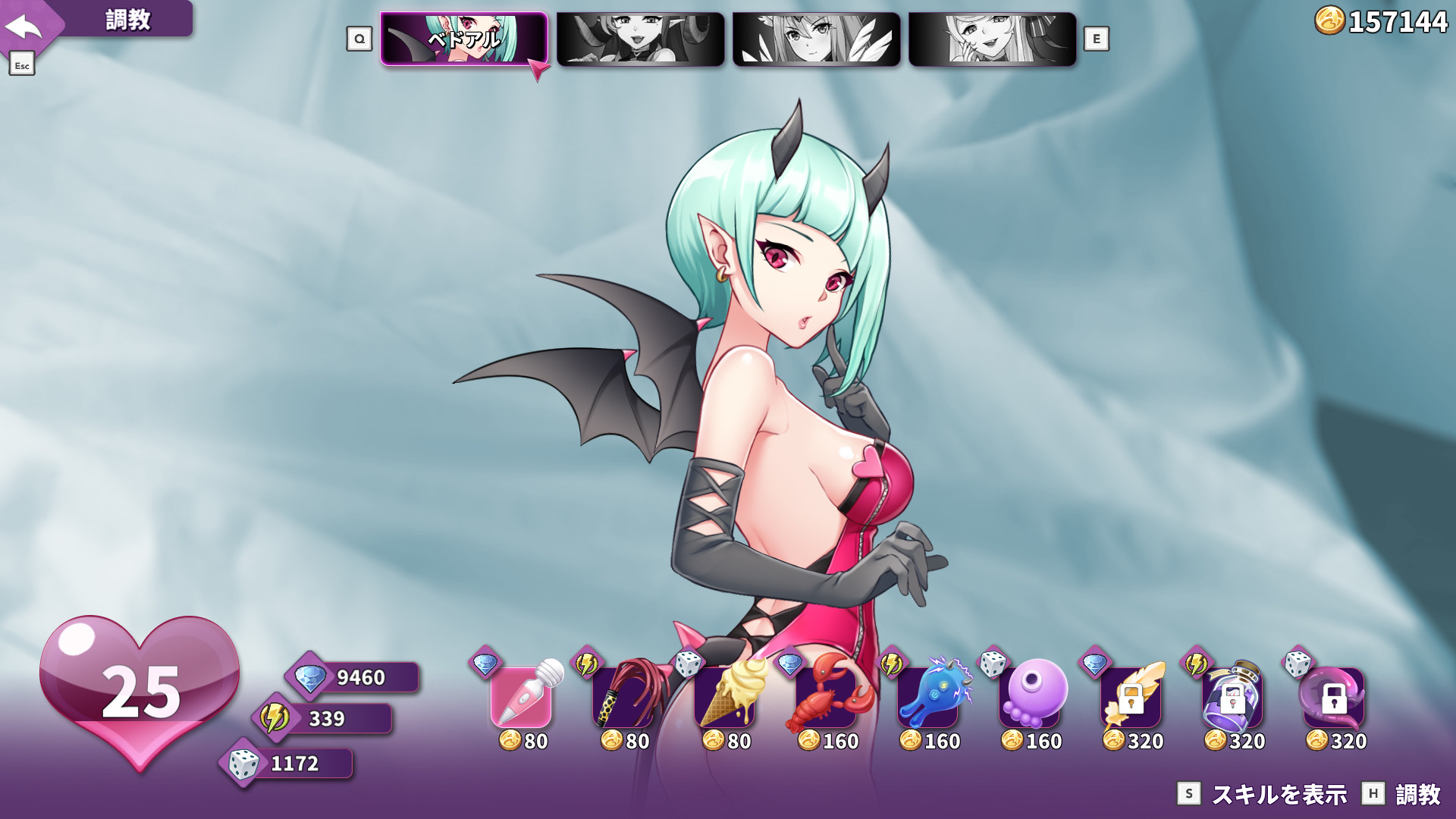• ステージクリアによって、資金を貰えることができます。資金を使っていろんなアイテムを購入して、「調教」機能により美少女たちのマージャンの能力を高めると、対戦で有利な状況を作ることもできます。