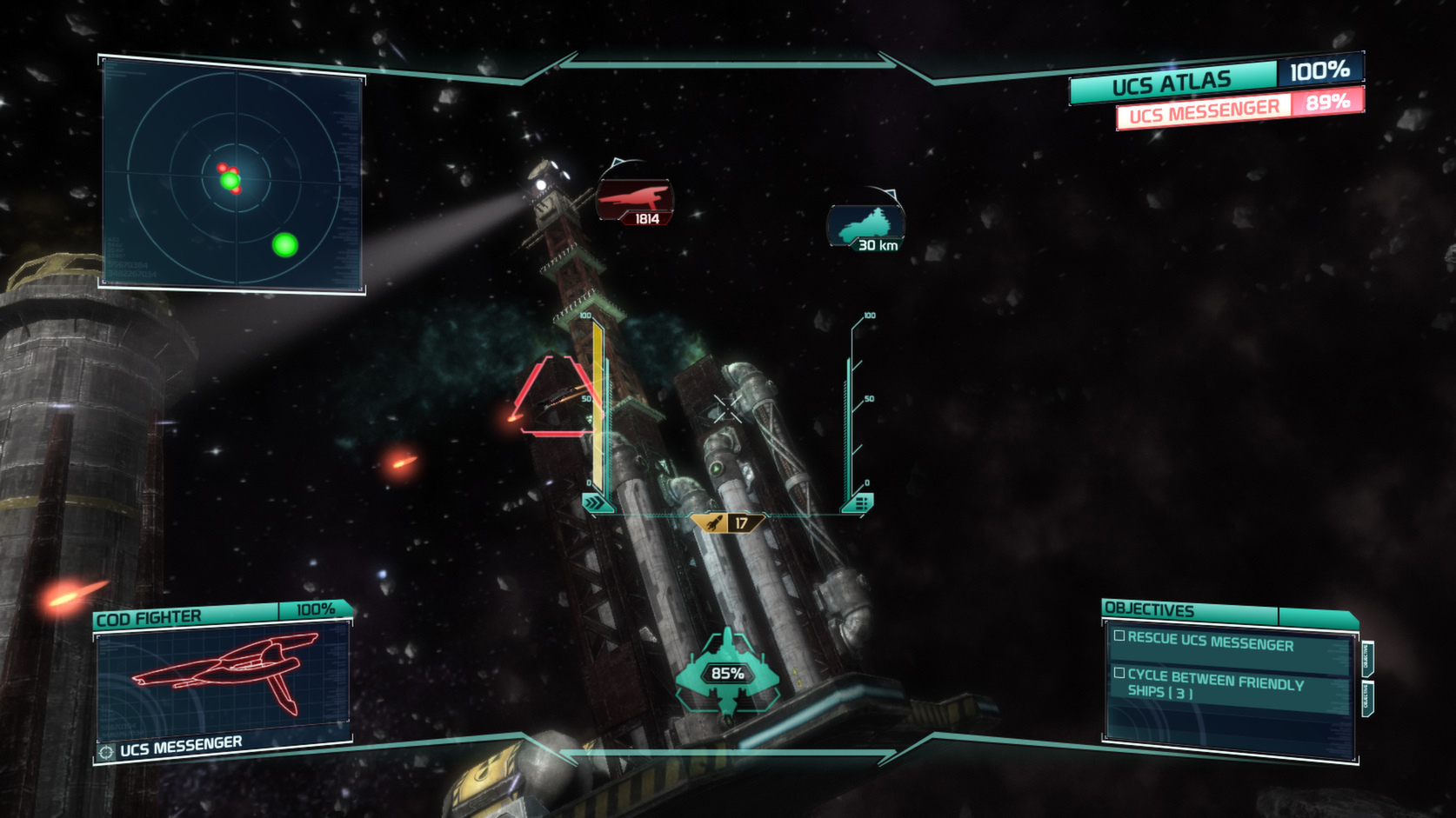 The flying mechanics in Exodus is down right broken. There is no perpetual motion, no strafing, no features of the kind you would expect in this kind of game. You fly in a straight line against your chosen target until you get to weapons range then you match speeds and mash the fire button until it is destroyed. Rinse. Repeat.