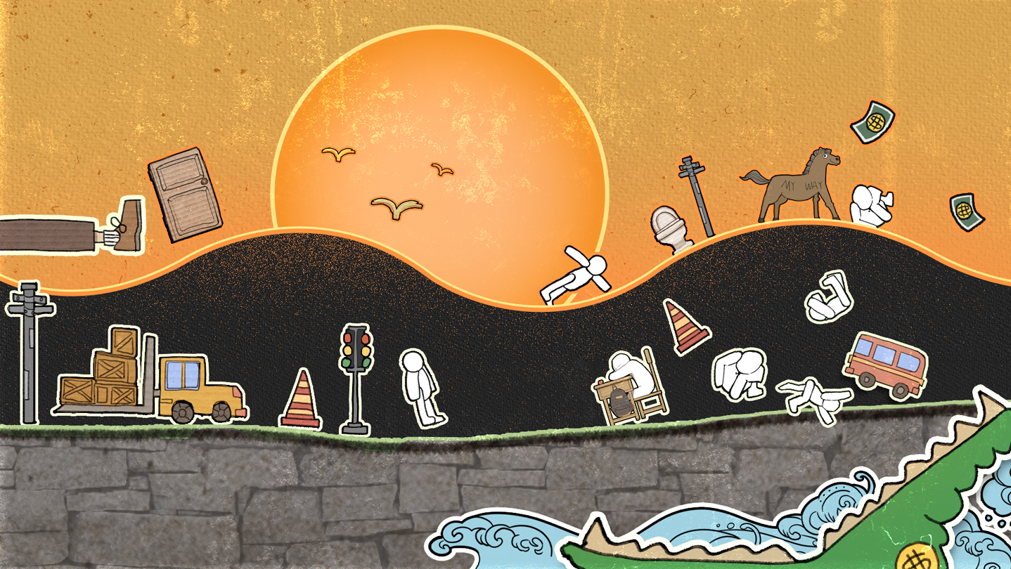 Obstacles and difficulties in real life are embodied in this game with a sense of humor. Beat them as best as you can.