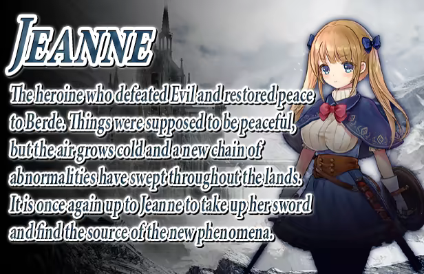 The heroine of this story is the earnest knight, Jeanne. She is the first and only female knight in the lengthy history of the kingdom of Berde. To save the imprisoned Princess Lily, she sets out on a journey. She puts aside her well-being to rescue the four spirits of Berde and restore the Royal Ring's power. At the end of her rigorous journey, the fate of Jeanne and Princess Lily rests solely in your hands...